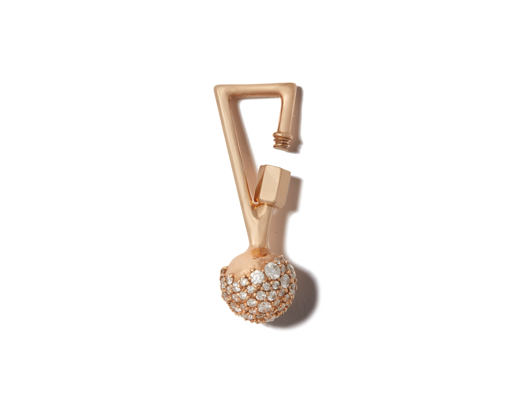 Punctuation is heavy. Weighty. It’s not playing around about playing around. This lock will help you express all of the exclamatory points you’d like to make (so many these days!), even if the mark itself is the point. The ball is SOLID, like your ideas. And dipped in diamonds (or mixed sapphires, not pictured).