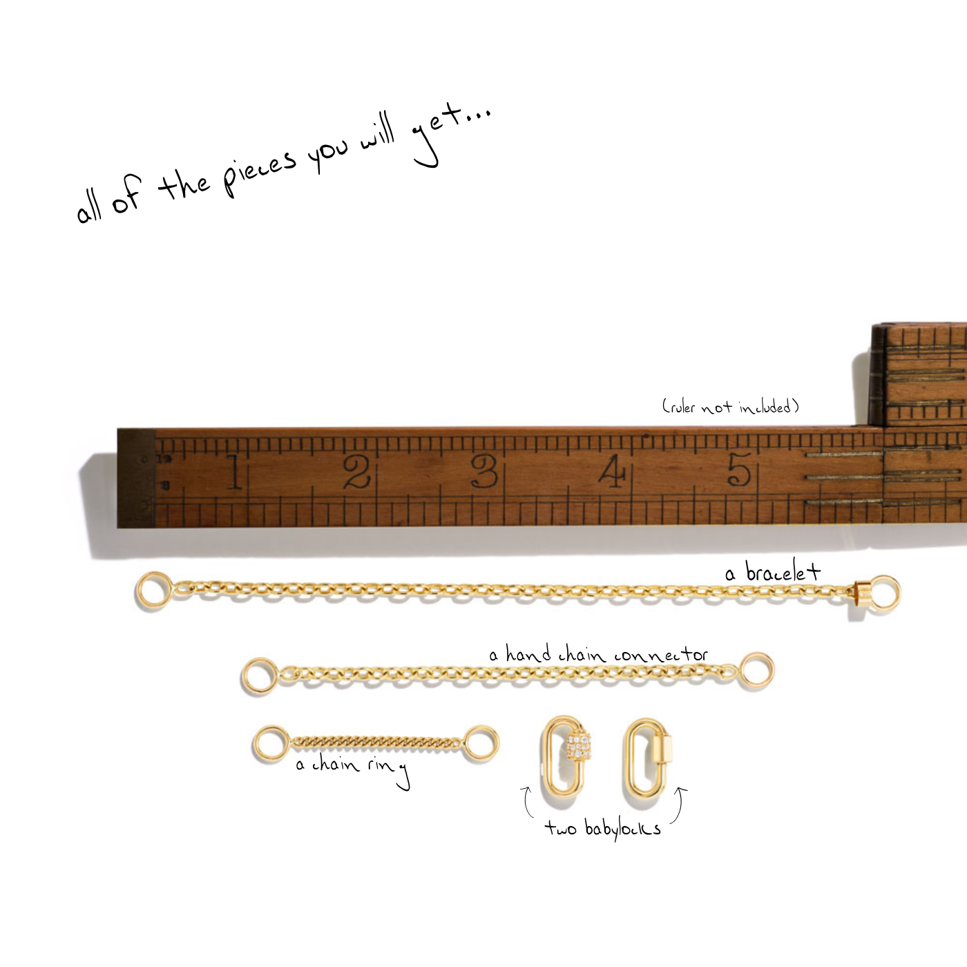 We have assembled some combinations of Locks and Chains that we think work beautifully together as Hand Chains, and apart, with your own jewelry, which is really what this is all about. These Hand Chains are one size fits most and are made to accommodate all of our Locks. If you have several Locks and chains already, you can simply purchase a Hand Chain Connector to create your own Hand Chain look.