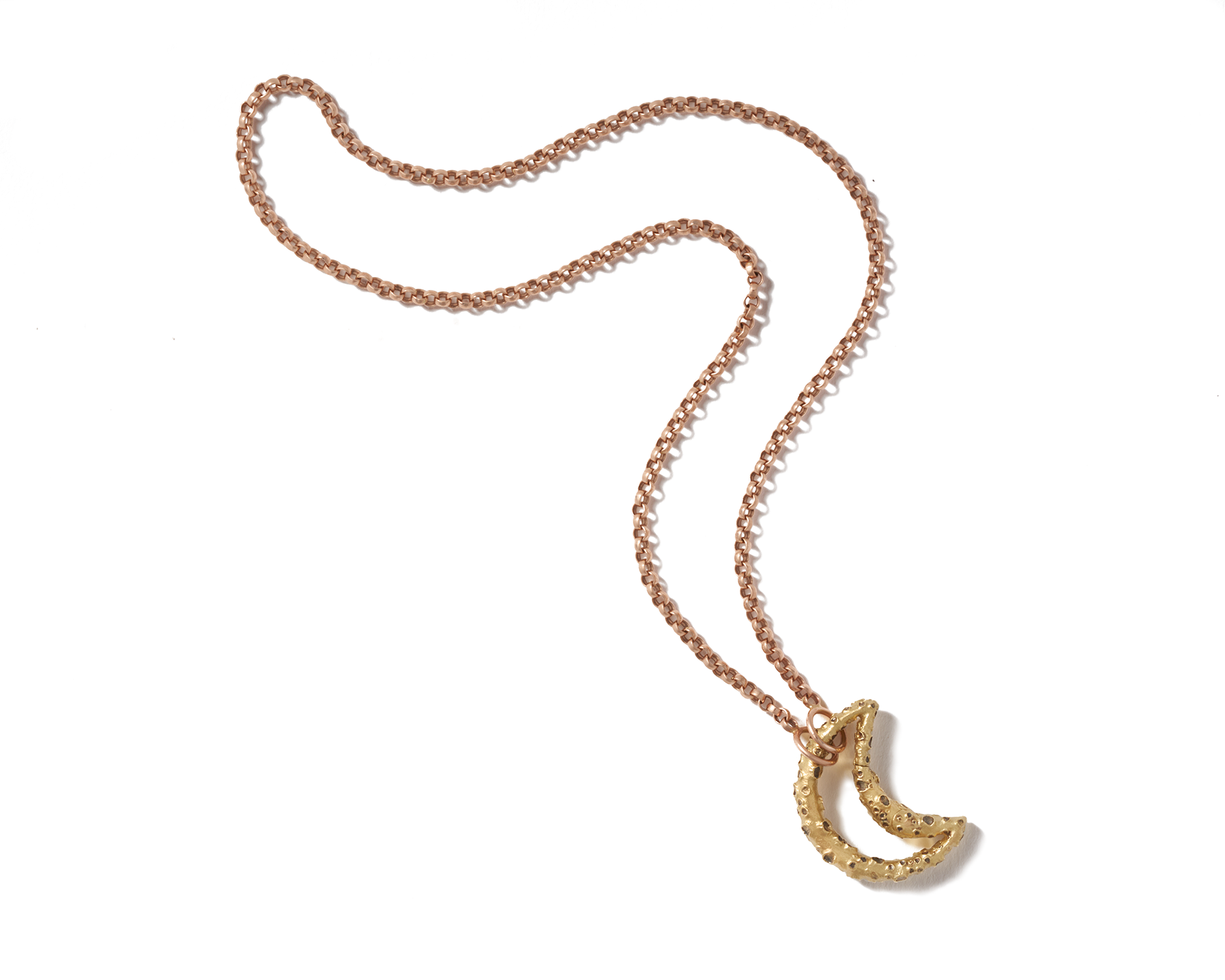 Our Moonlock 2.0. What can we say? Its weight and fluid shape make it perfect with almost anything, which is probably why it is so very popular. Wear it with our MiniMega Chain as a bracelet. Or why not add two chains and two locks for a layered look? There's nothing this one can't do.