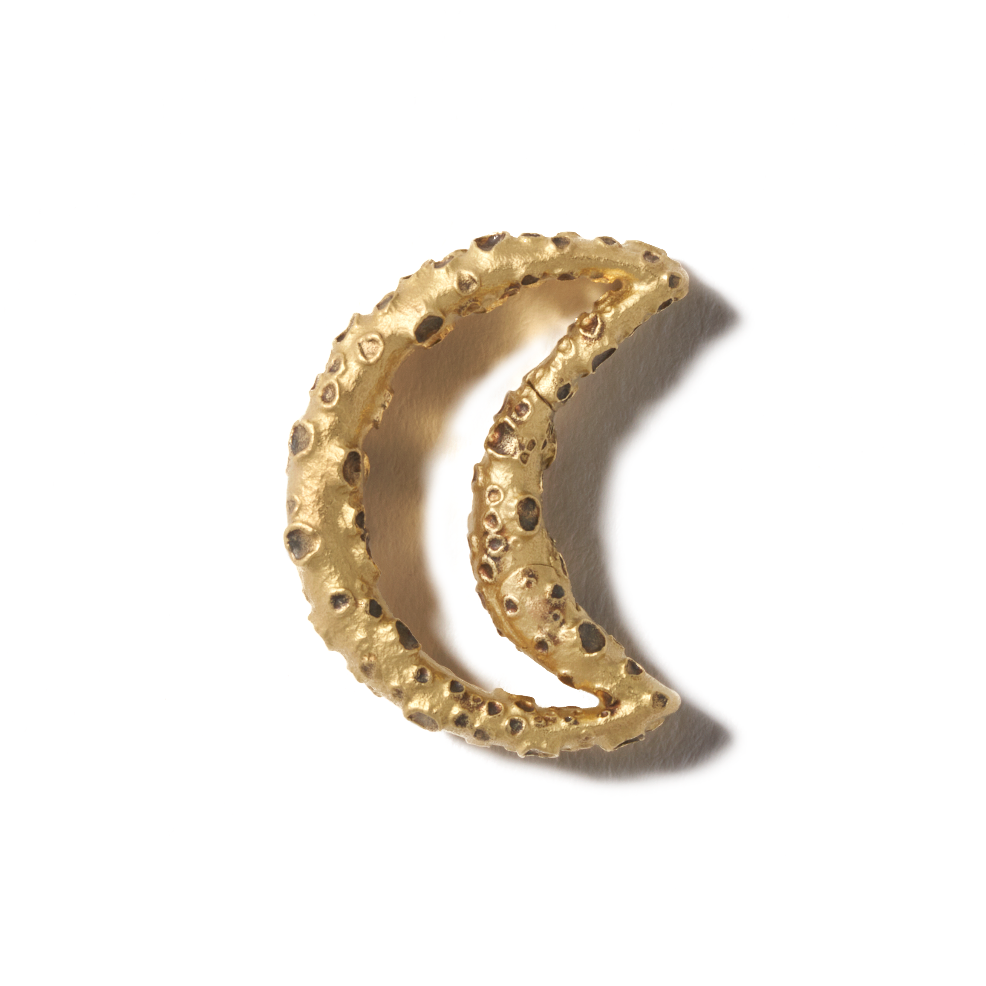 Marla took actual imagery of the moon's surface with all its uneven crater-y, gritty goodness to create this textured version of our very popular Moonlock. You will notice that the intricate surface has been highlighted ever so softly with some blackening so that they really feel like…well, that you’re on the moon. Like the other Moonlocks in the series, this style features a lever mechanism that opens and closes in a way that is beautiful and strong.