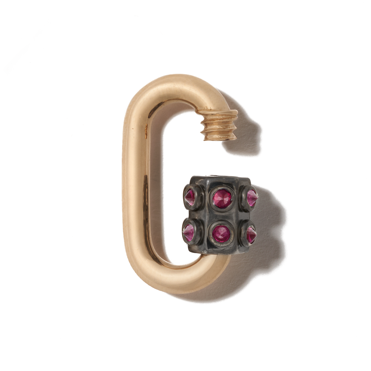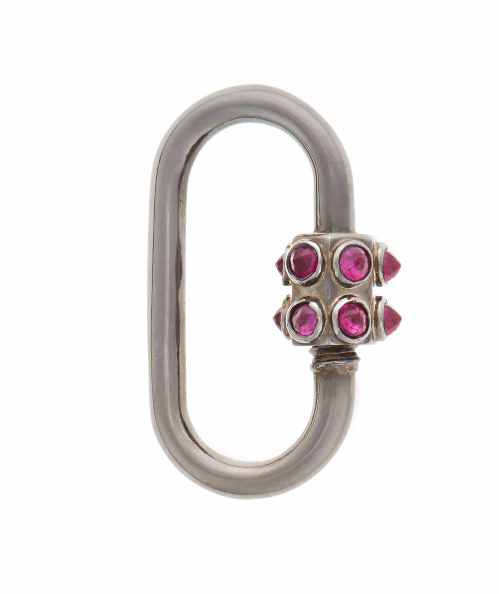 Blackened White Gold Stoned Medium Lock with Inverted Rubies