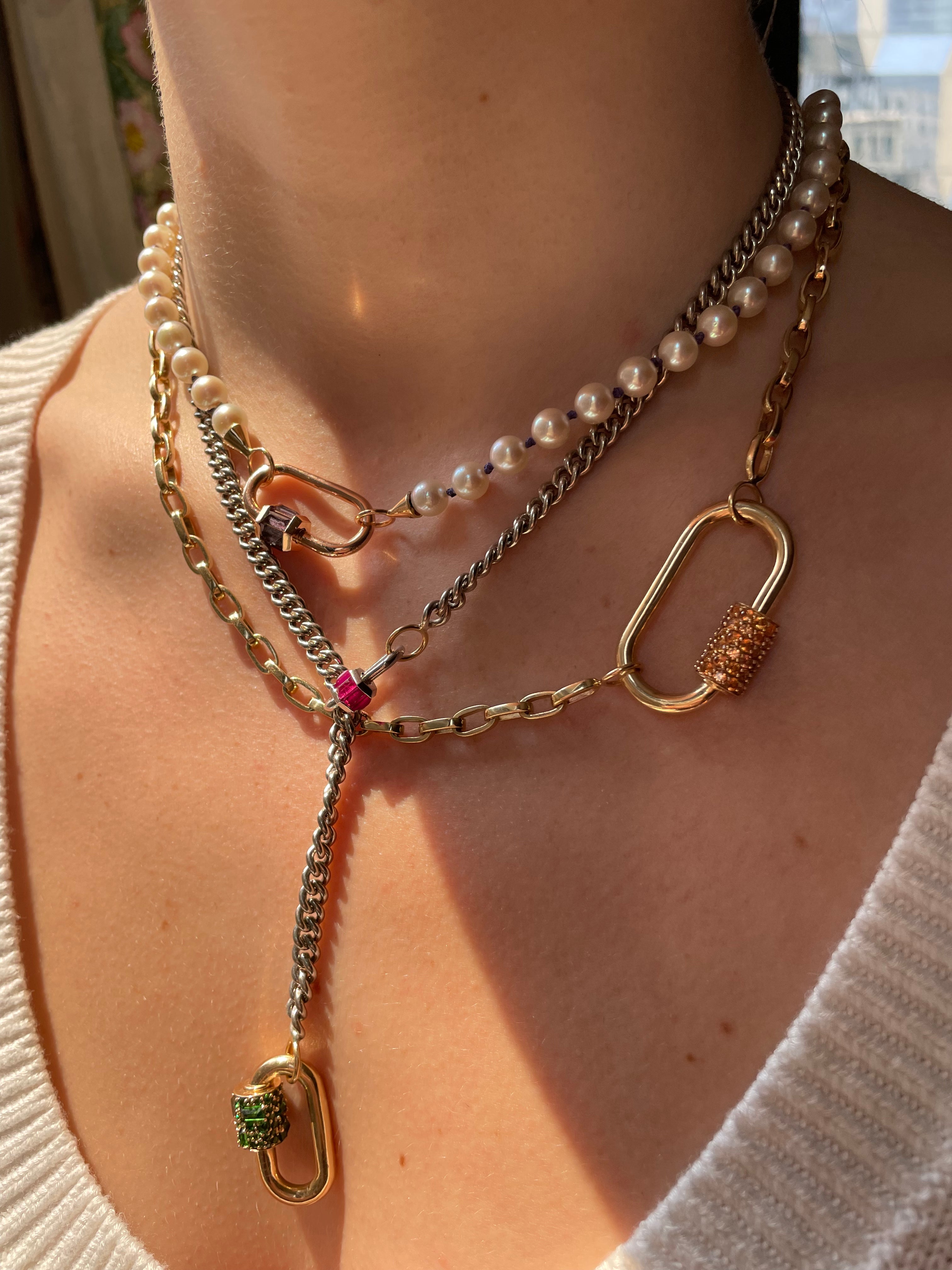 Stoned Chubby Medium Lock with Diamonds & Emeralds