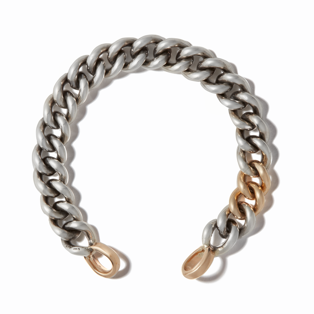 Mega Curb Half and Half Chain Bracelet in Silver & Gold