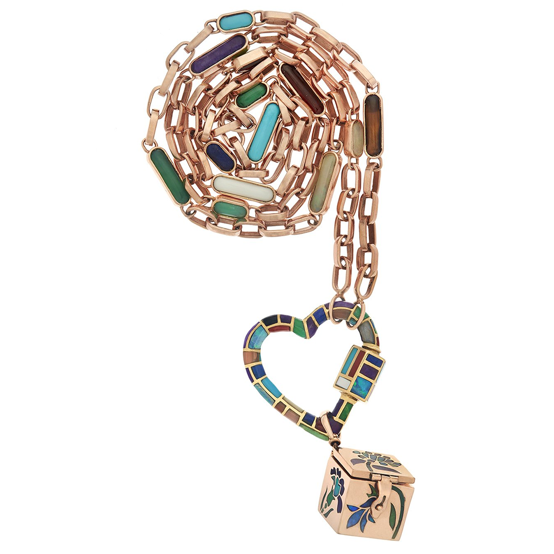 This chain is inlaid with different semi precious stones. Works beautifully with all of our locks.  14k Gold The link…