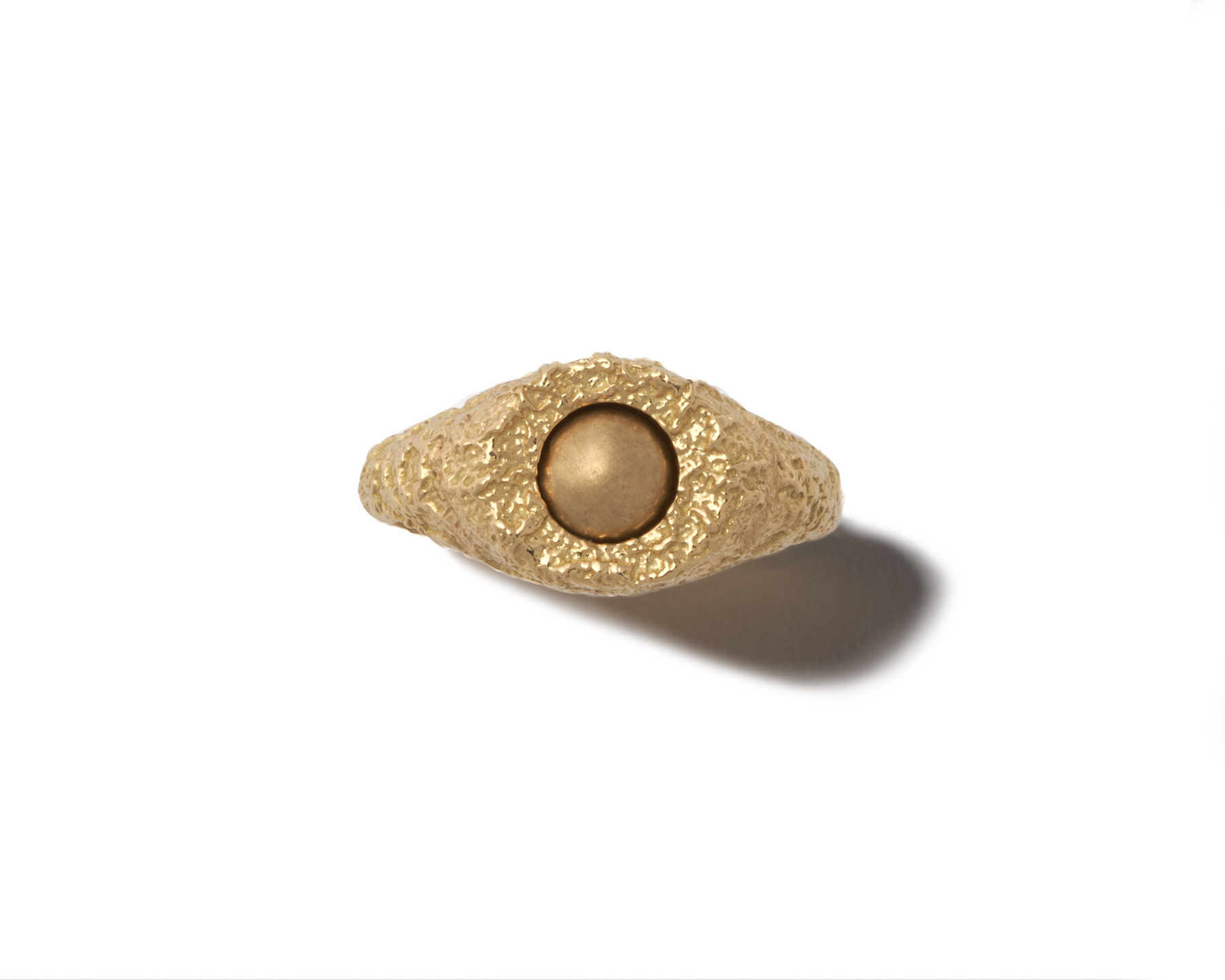 The Self-Involved Signet Ring is named as such because, unlike other rings of its kind, it has nothing to do with honor or family or heritage and is simply about you and the extreme self-satisfaction you’ll feel rolling a single gold ball around your finger.
