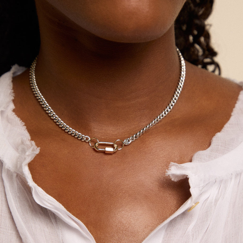Our most popular heavy silver chain. The chain has an old style Victorian feel because we oxidize the silver to give it that old quality. The gold loops turn a simple silver chain into something truly spectacular. Choose whether you want your loops in Rose, Yellow, or Green Gold Loops.