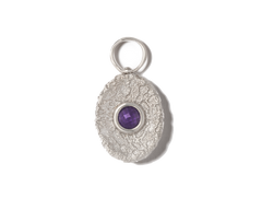 Part of our latest charm series this charm is a small slab of Charoite. The color is a deep purple and it is stunning. No two are even remotely alike. It swivels to a back that is solid gold and perfect for engraving.