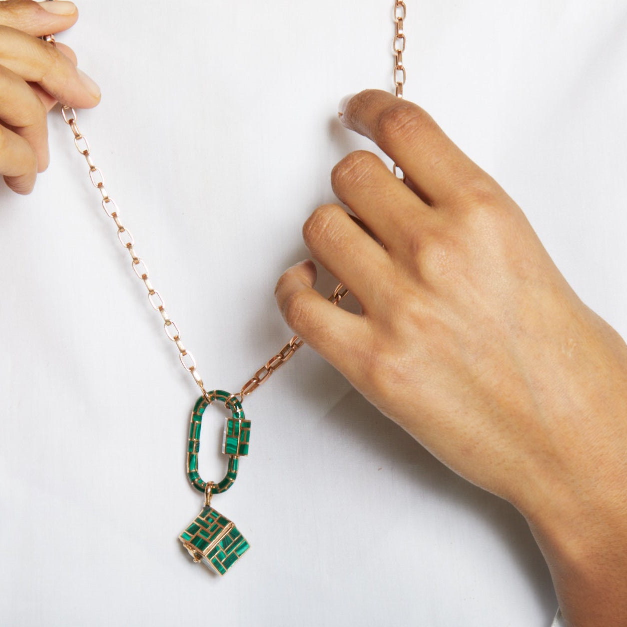 The All Inlay Lock measures 3.6cm x 2cm with a thickness of 3.7mm. Closure is 8.5mm with 64 inlaid Malachite stones.