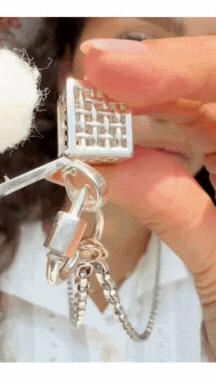 All six sides. Mesh. Designed to hold a cotton ball soaked in your favorite fragrance. It’s tactile. Personal. Slightly nostalgic. Once you wear it you will feel naked without it. At least that is how I feel about it. It's here in silver...and if you're more of a gold person, we have that, too.