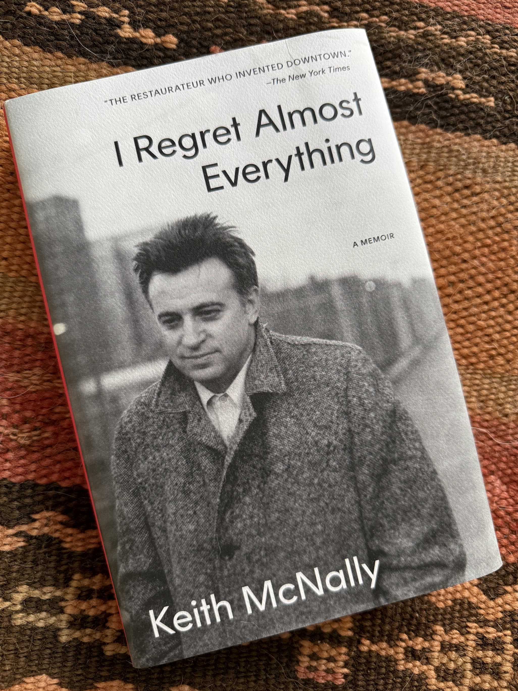 You seem to like when I leave you something unhinged so here you go: The Keith McNally autobiography, I Regret Almost Everything, is a joy in its absolute candor. Mr. McNally tells us all like it is but most especially himself. It explains why in a world of “one hit wonder” restaurants that trend hard and die fast, he’s still building and outlasting them all. (On a side note, almost at the same time I saw the Billy Joel documentary and couldn’t help wishing for a chance to sit down and chew the fat with these two legends who I hope know each other.