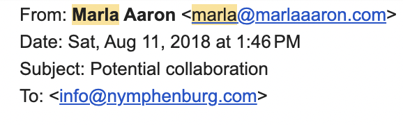 Cut to many many years later when I had launched my company, and, from our teeny tiny office on 47th street, was reminded of my obsession, and I thought "why not just reach out?" So I emailed "info@nymphenburg.com". Really. I still have the email because I never throw anything out.