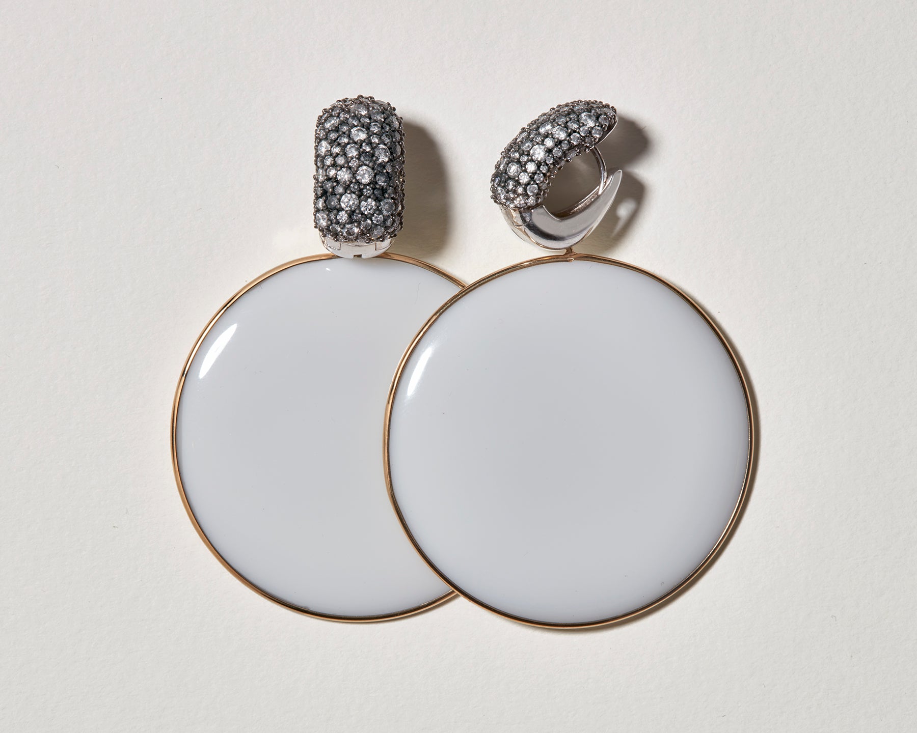 Where the earring game begins. Wear these as stand-alone huggies or use them as a building block base. Add one Lozenge, then maybe another? Why not one more? Cap it all off with a Disc, or don't...we make things to be whatever you want them to be.