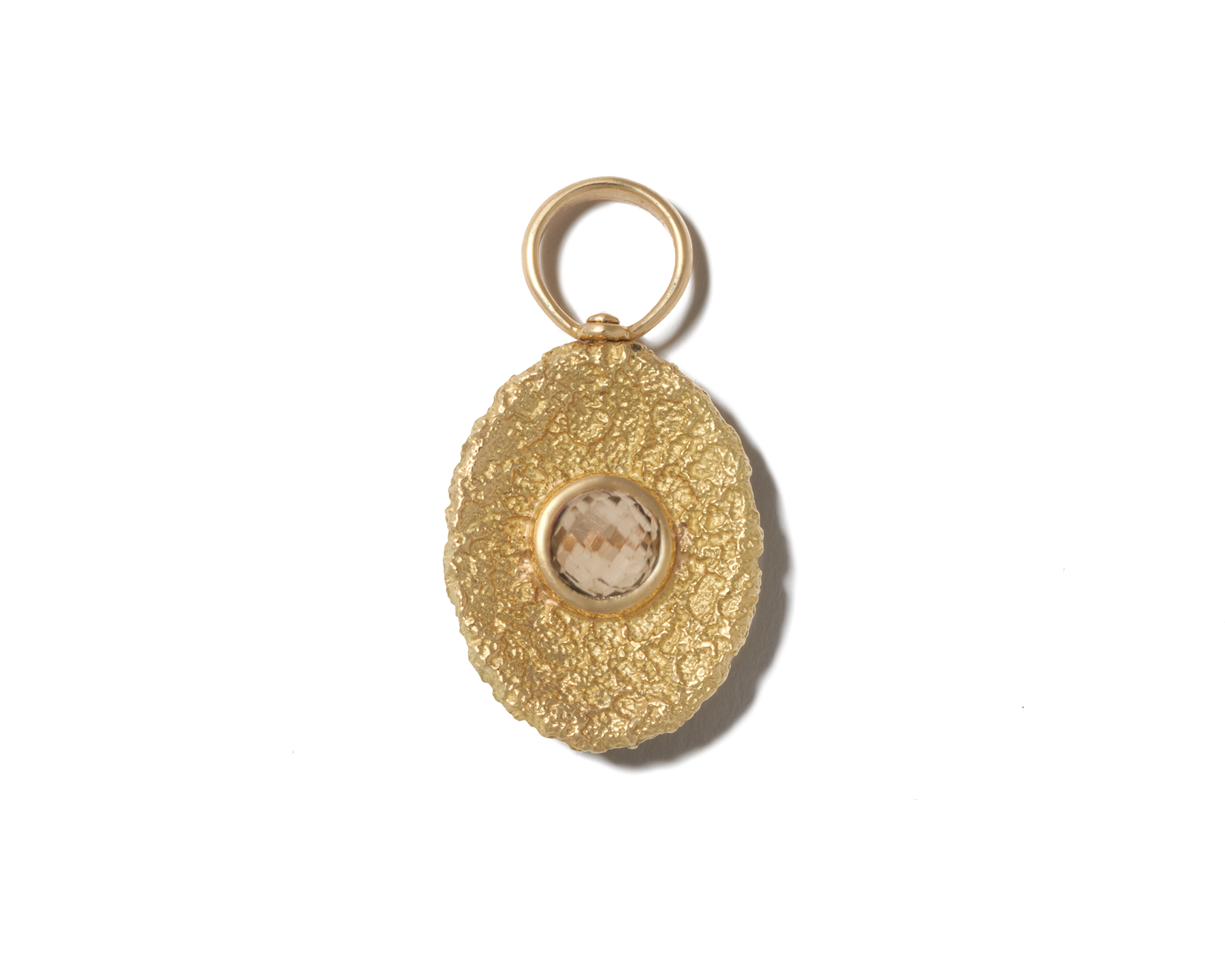The “gritty” base is available in 18k gold — white gold, yellow gold, rose gold, and the stone is hand-cut into a sphere by master stone cutters.