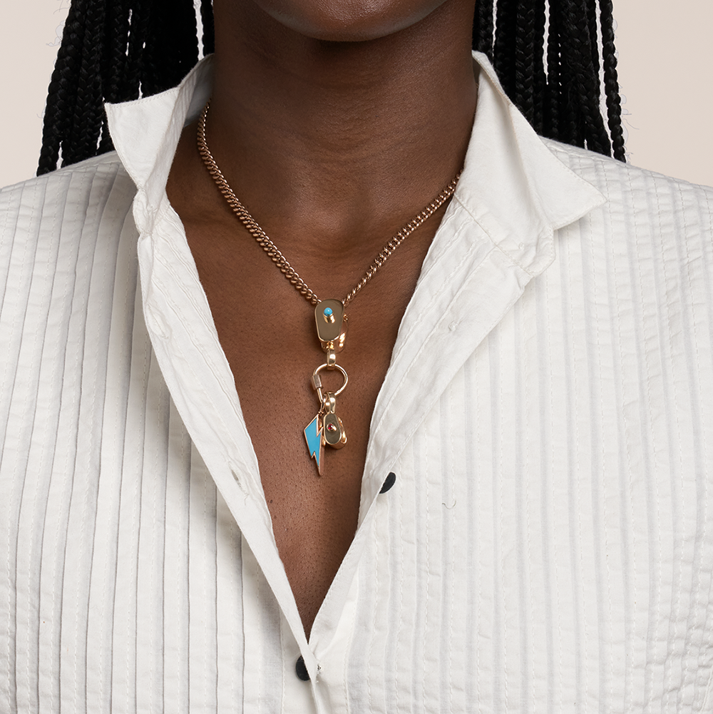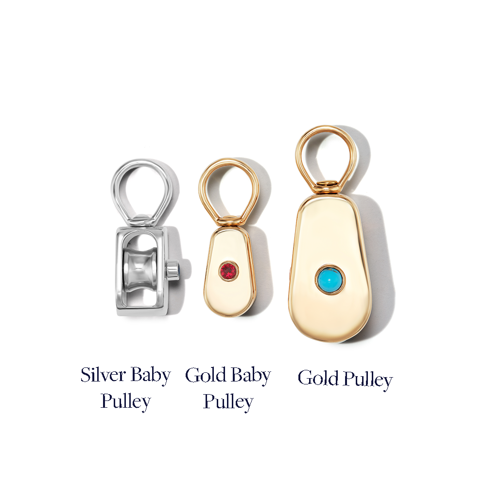 It was inevitable that we would have to make a Baby Pulley. Because the function and movement of our original Pulley made us realize that more people should have “a Pulley moment”. While fun to simply “play” with as a charm, the Pulley is also functional--a chain can be added at any length to add additional charms OR to change the length of a necklace. But to simply roll it in your hand or swivel it around. We made the Baby Pulley in sterling silver too. (We heard you) The Baby Pulley works to maximum effect with our Fine Curb and Not So Heavy Curb Chain for smooth, full functioning, yet could also be used with the Gold Old World Chain in a pinch.