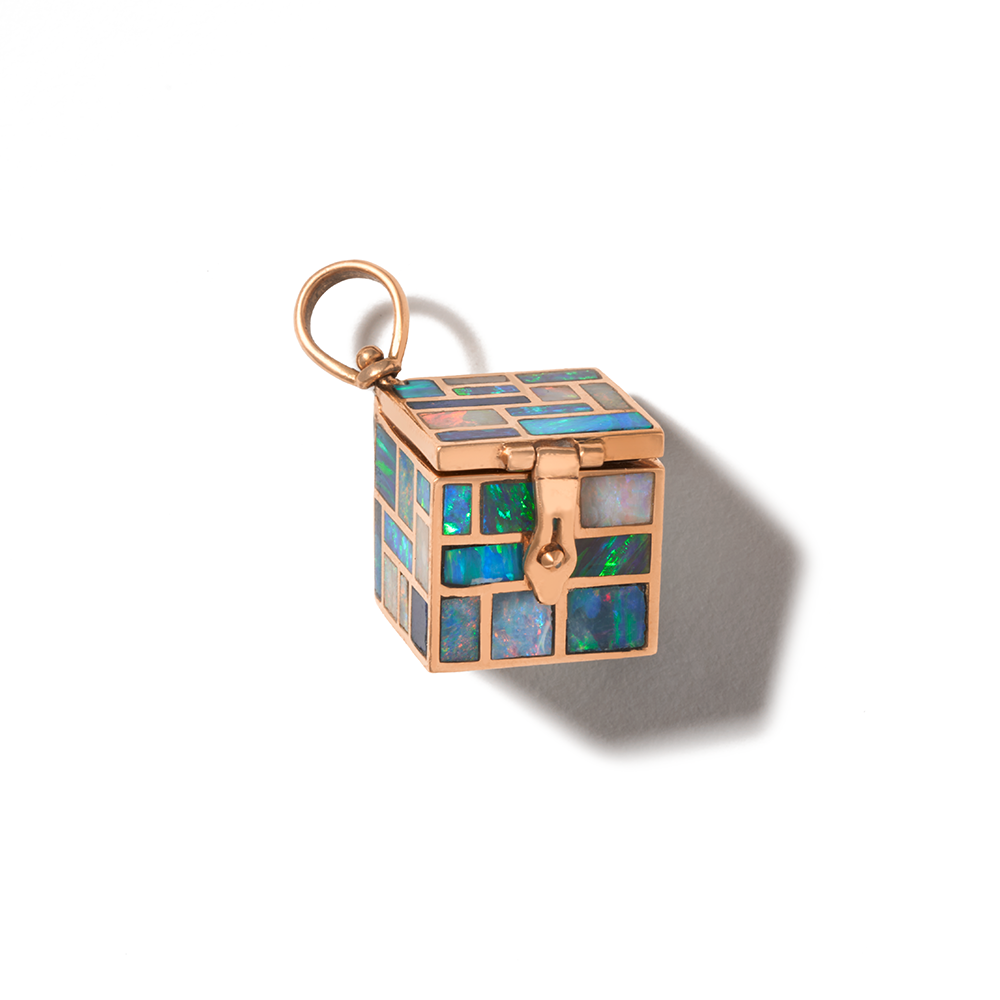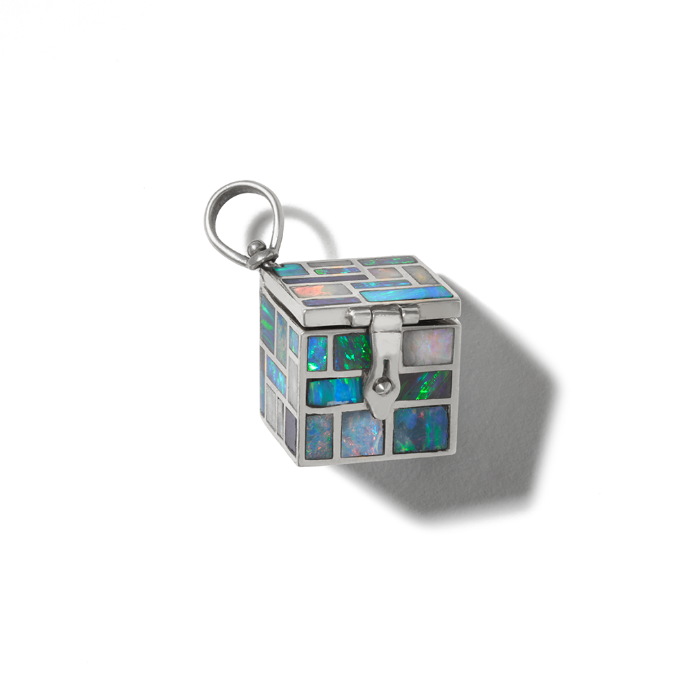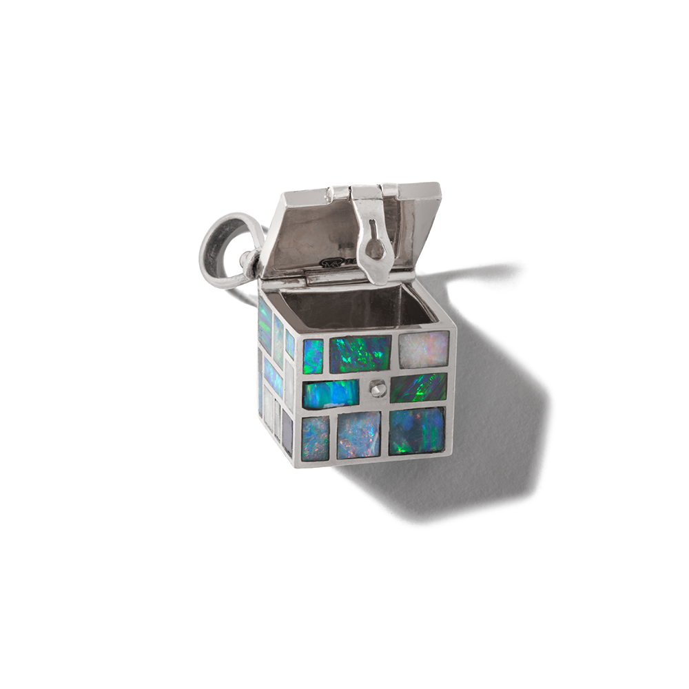 Inlaid with 55 Opal stones, this Charmed Box measures 13mm x 13mm x 13mm.