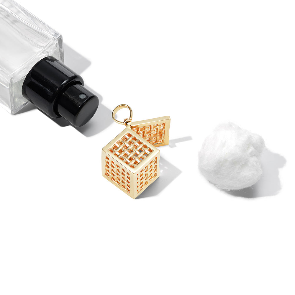 It means that the box is quite literally a vehicle for your fragrance. With six woven sides, this version gives the ultimate fragrance experience  to carry with you as a charm. The first versions of a"vinaigrette" was a pomander, that can be traced back to the Middle Ages and were generally in gold or silver and studded with jewels, pierced to allow the fragrance to disperse. Vinaigrettes evolved from this idea during the late 18th century and were small containers used for holding various aromatic substances. They usually held a tiny piece of sponge soaked in a liquid (like vinegar). It's primary purpose was to mask bad smells. The primary purpose of our Vinaigrette is for your fragrance.  Simply soak a cotton ball or a tissue in your favorite fragrance and nestle it in the box and that is all. I'm sure you can think of other things to put in there... of course you can.