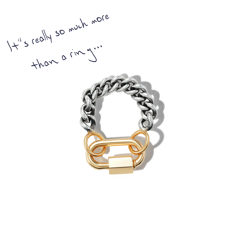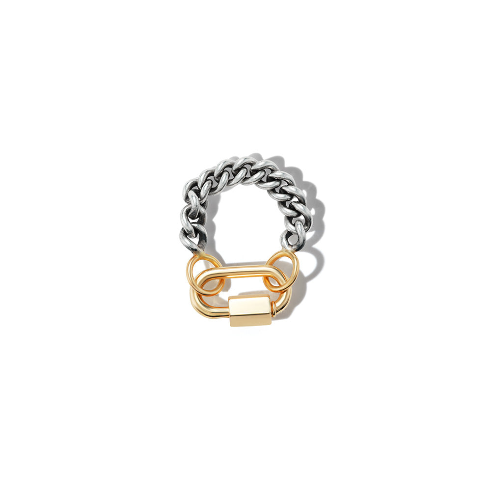 Silver Heavy Curb Chain Ring with Gold Spring Babylock