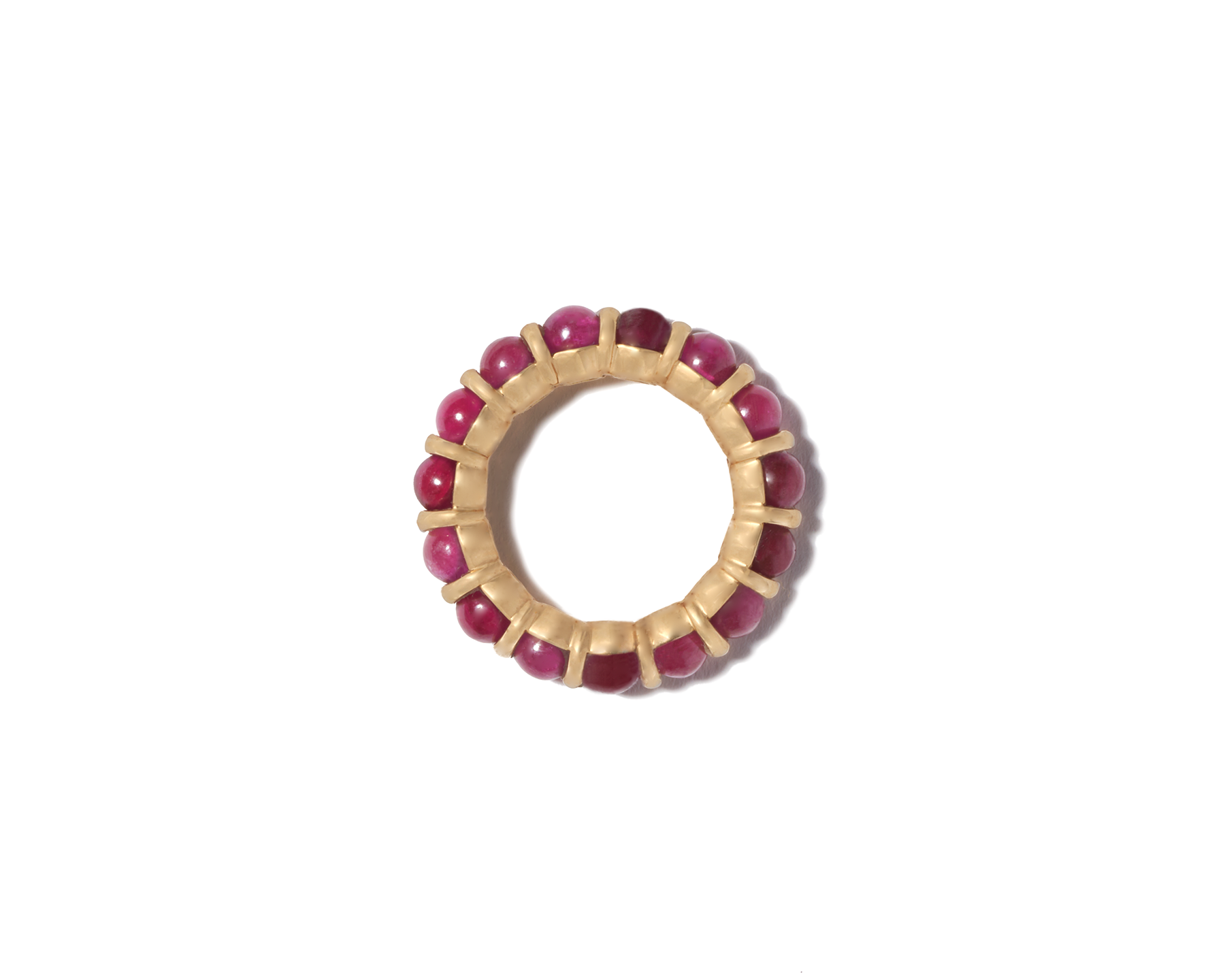 The idea for a ring with balls that roll was an afterthought of the Kissing Spheres ring from our DiMe Siempre series. We developed diamond balls for its closure, and seeing that made Marla think all that was missing was them actually moving.