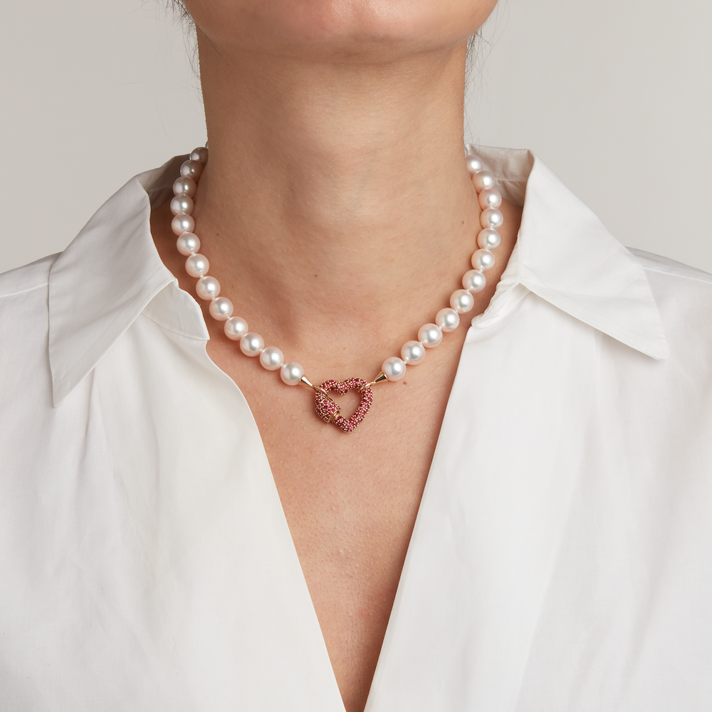 Our very first allstone version of the Heartlock, here rendered in stones of different sizes, 4.5 carats of rubies 2.1cm x 2.1cm with a thickness of 4mm, closure is 7mm 14k Rose Gold Contains almost 4.5 carats of rubies.