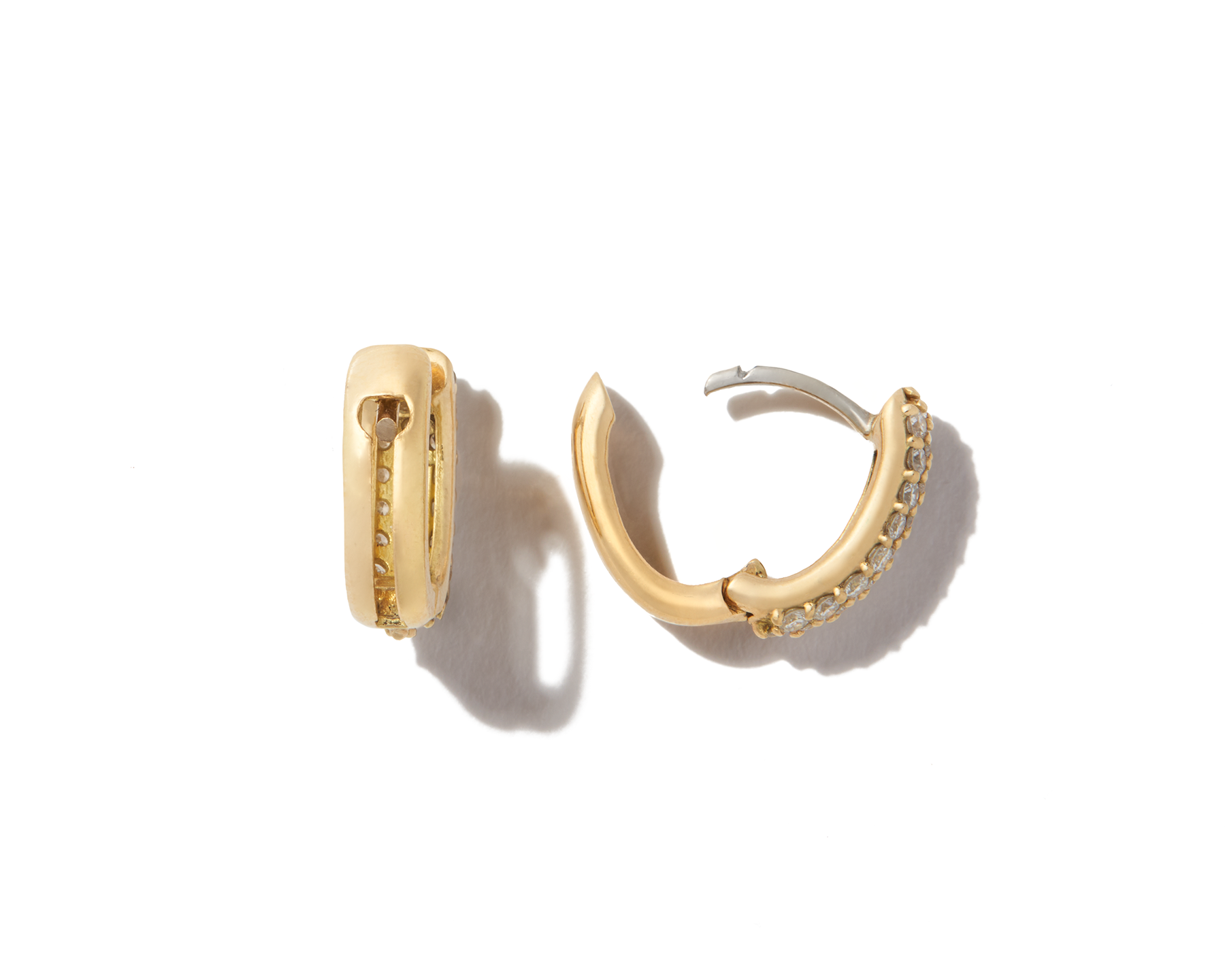 Where the earring game begins. Wear these as stand-alone huggies or use them as a building block base. Add one Lozenge, then maybe another? Why not one more? Cap it all off with a Disc, or don't...we make things to be whatever you want them to be.
