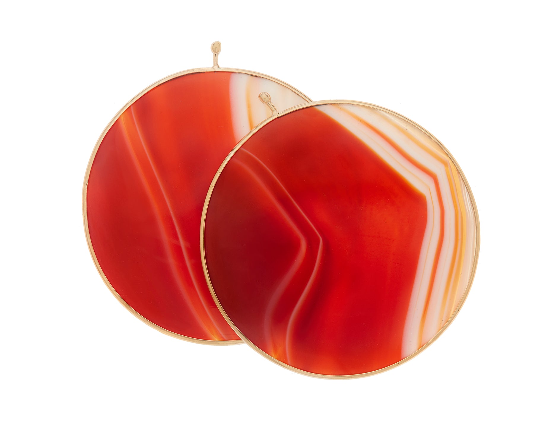 These carnelian discs can be added to Lozenges or worn on their own with the Earring Bases.