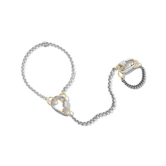 We had an epiphany that many of our chains and locks could be transformed into Hand Chains with one extra piece a— “missed connection”— meet the Hand Chain Connector. With this piece, you can connect your rings and bracelets to create a hand chain look. All you need to do is measure the length of your hand from the base of your finger to your wrist (see image). We have strategically offered sizes that will fit most hands and accommodate different sized Locks. If you prefer a snugger fit, size down, if you like more drape, size up. There is wiggle room in all of them. As always, it’s really about your preference. Please do not hesitate to reach out with any questions. We are here for you! info@marlaaaron.com.