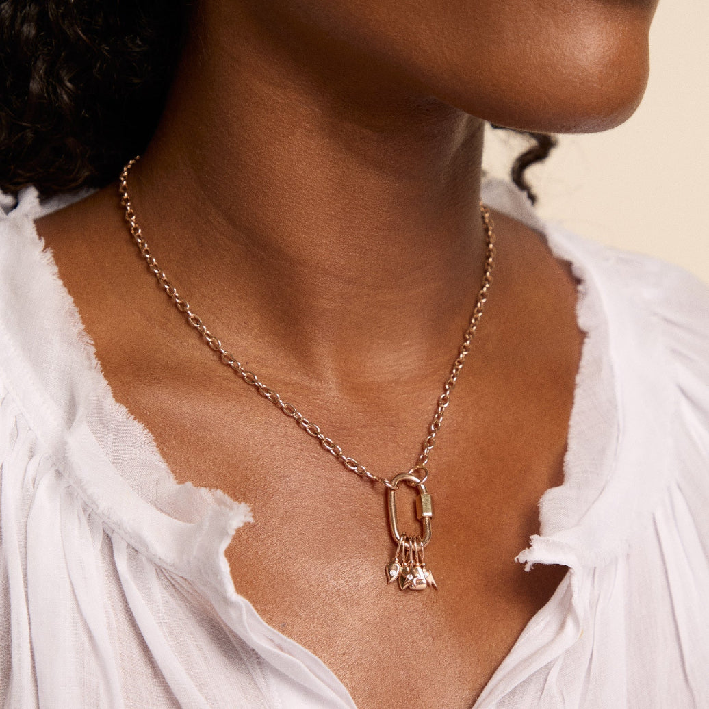 After a search far and wide to find a midweight quality gold chain in yellow, rose and white gold, we now have the Pulley Chain. We love this chain because it is suitable for virtually all the locks and can be worn at every length.