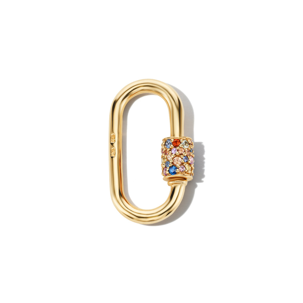 The locks were the original concept for the entire jewelry collection. Once I realized that I could morph the shape of a hardware store carabiner in a myriad of ways, the collection became a reality. Most of our locks can be hand or machine engraved.