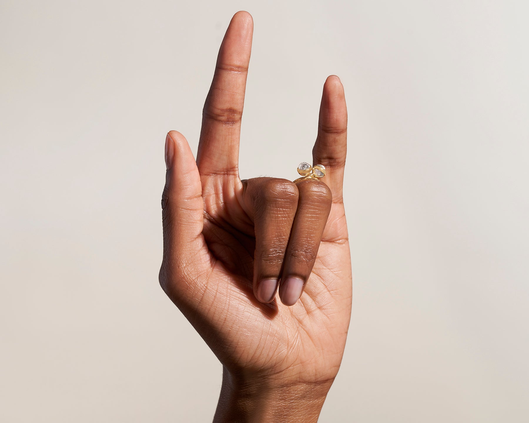 Whereby we got down on bended knee to ask an exceptional diamond cutter if we could cut diamonds into perfect, faceted spheres that would “kiss”and open, with a very satisfying *click* to reveal your message. They said yes. So we did.