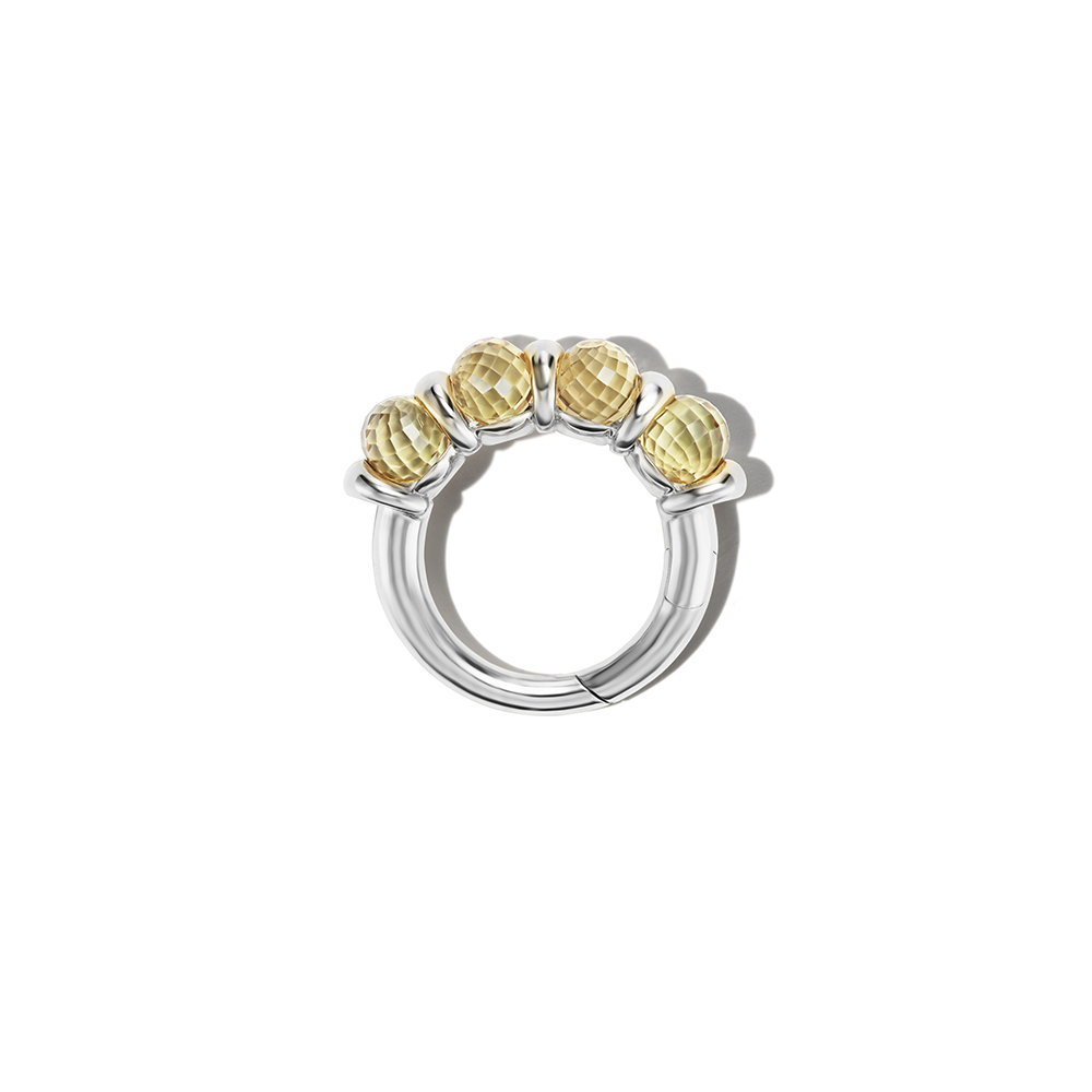 A ring full of independently rolling stones, hand-cut into spheres by master stone cutters that works as a Lock. It’s not that we don’t think a ring can simply be a ring. It can. We love a good ring. But when a ring can have balls that roll sitting on your finger and then, in a pinch be a Lock? We could not help ourselves. Adding a seamless hinge to this ring simply made sense. Do you need a ring full of balls that roll with a hinge to hang things from? What is this need you speak of?