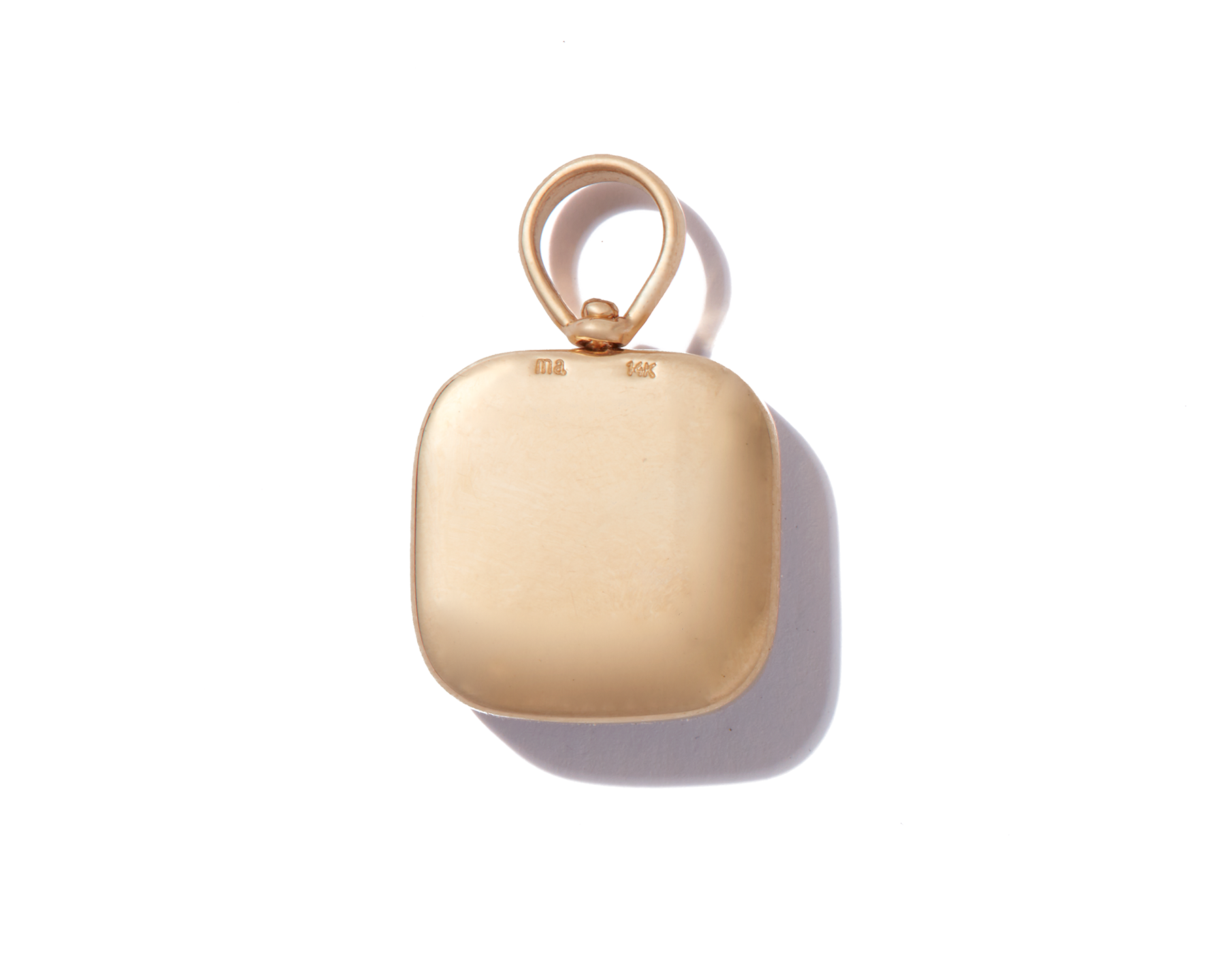 Part of our latest charm series this charm is a small slab of Charoite. The color is a deep purple and it is stunning. No two are even remotely alike. It swivels to a back that is solid gold and perfect for engraving.