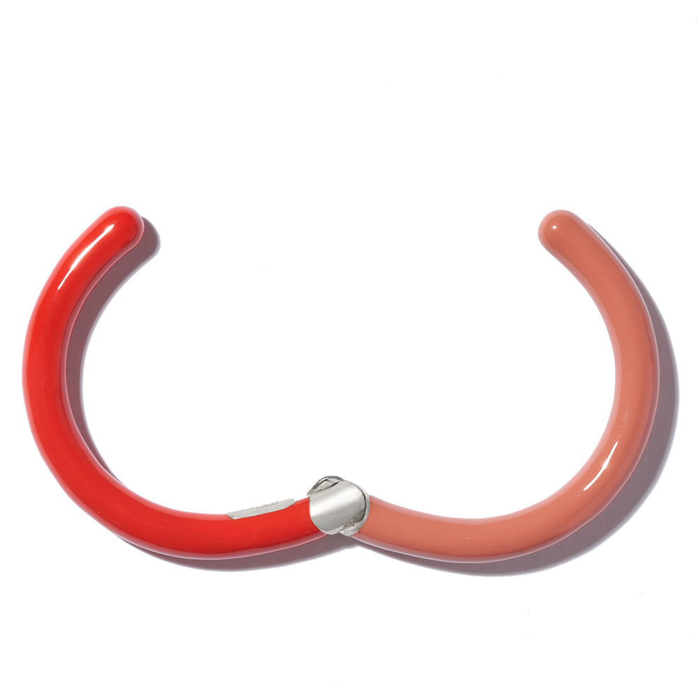 The Enamel Hinged Cuffling® is sterling silver and enamel.