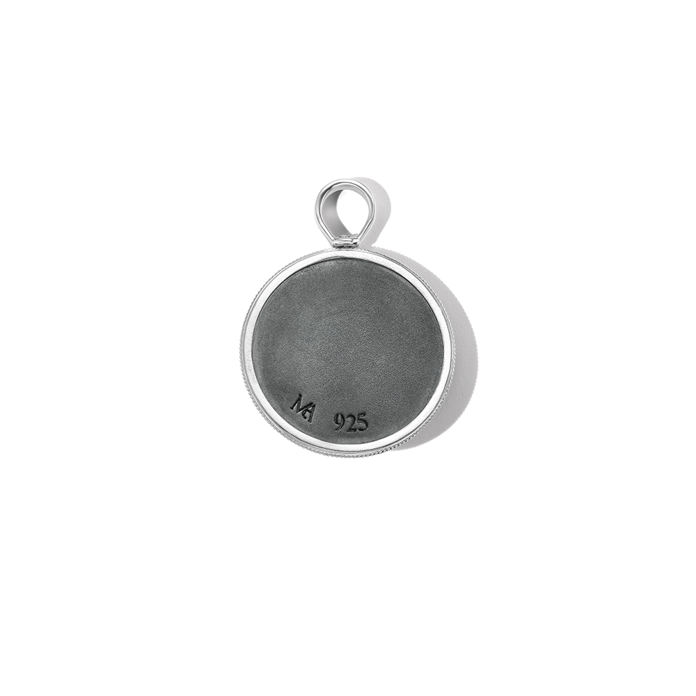 While all of our pieces are optimized for play, our charms are where we tend “goof around" the most. Sometimes they’re made from things Marla has collected over the years—available in very small quantities—and sometimes they’re like this: just a few of our most beloved Lock styles, stacked up in one delicious pile on one side of a swiveling medallion. The other side is perfect for engraving. There is no front or back—thanks to the swivel, also great for fiddling. This charm is oxidized and available in all silver (exclusively at our showroom in New York City and marlaaaron.com) or mixed metal (silver/yellow gold or silver/rose gold).