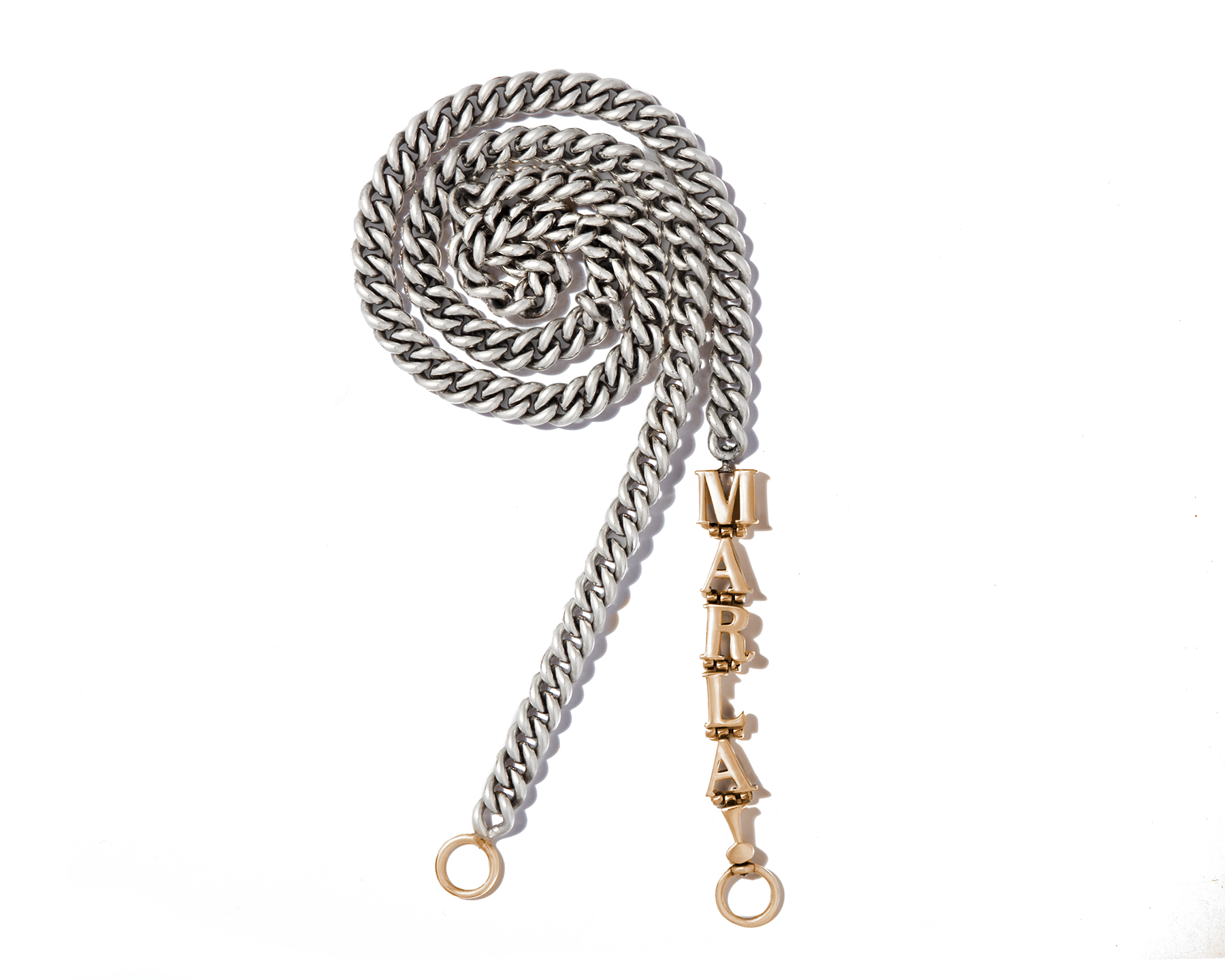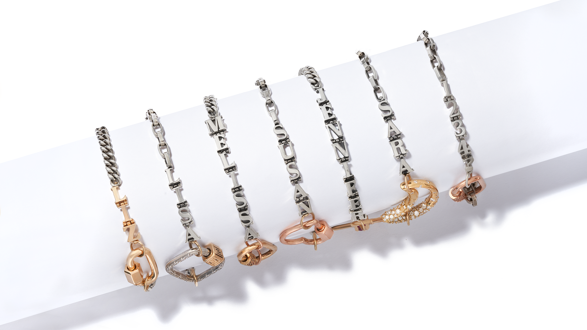 Talking Chains is the culmination of a year-long project where we wanted to incorporate words, symbols and numbers into a chain. We challenged ourselves with the notion that all the characters had to move precisely like the chain so no mobility or function would be lost. (If you think of a standard name tag necklace, the characters are immobile. Same with an ID bracelet.)