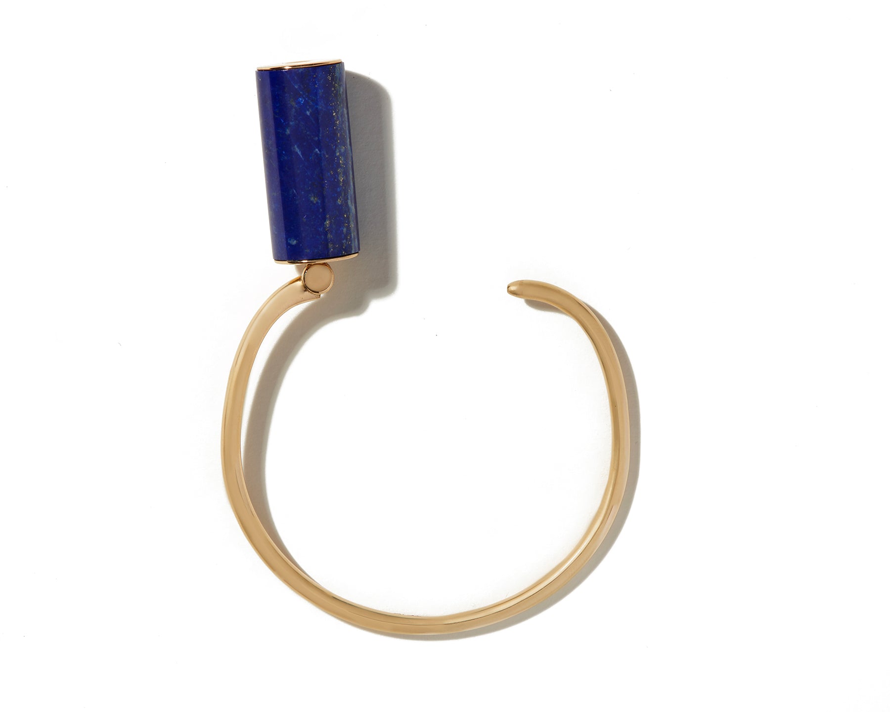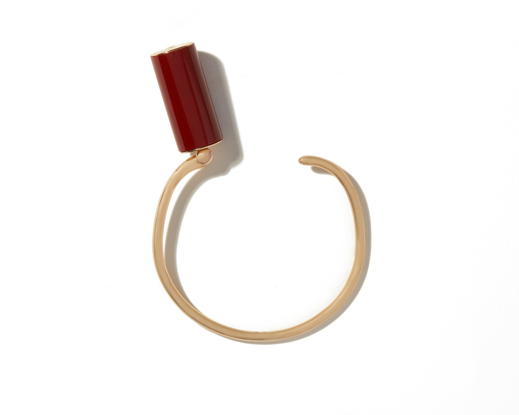 In 18K gold and a cylinder of Fordite--the paint that accumulates on the floor of automotive.