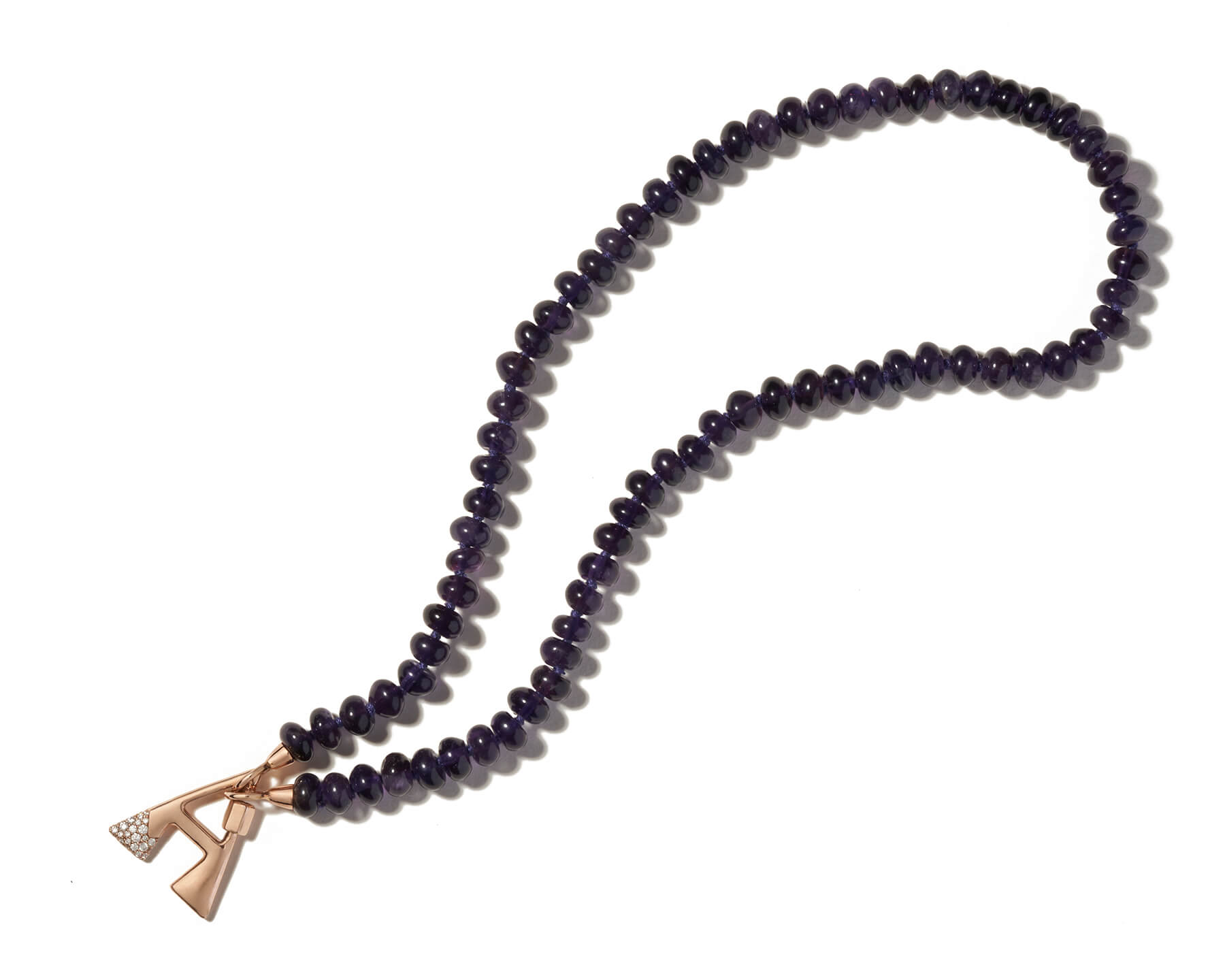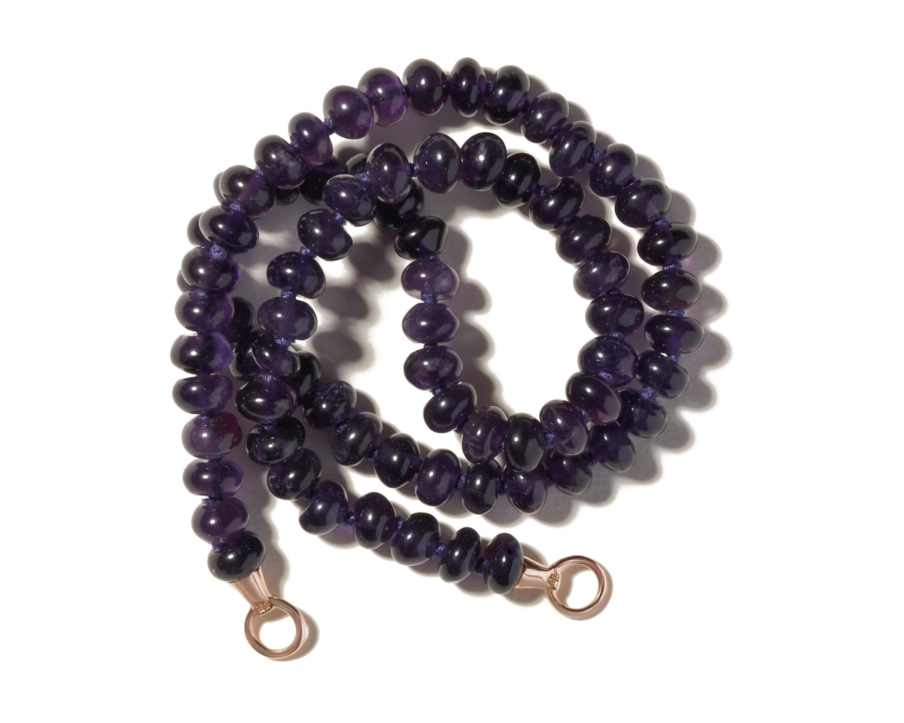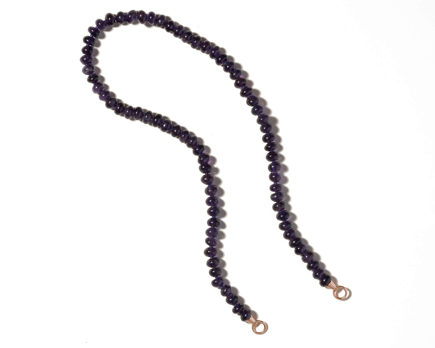 A strand of amethyst rondelles measuring approximately 8mm wide and up to 24" long. Rondelle refers to the round circular way in which the stones are cut. For your Lock.