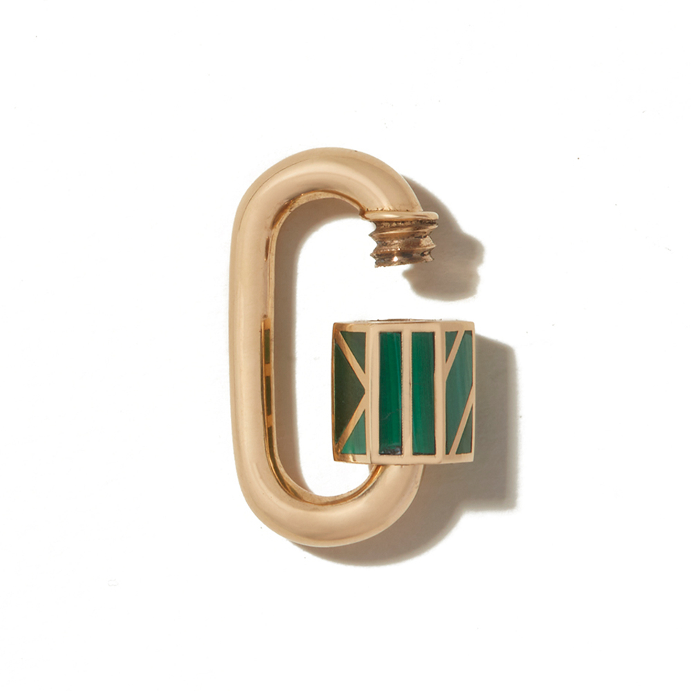 The locks were the original concept for the entire jewelry collection. Once I realized that I could morph the shape of a hardware store carabiner in a myriad of ways, the collection became a reality. Most of our locks can be hand or machine engraved.