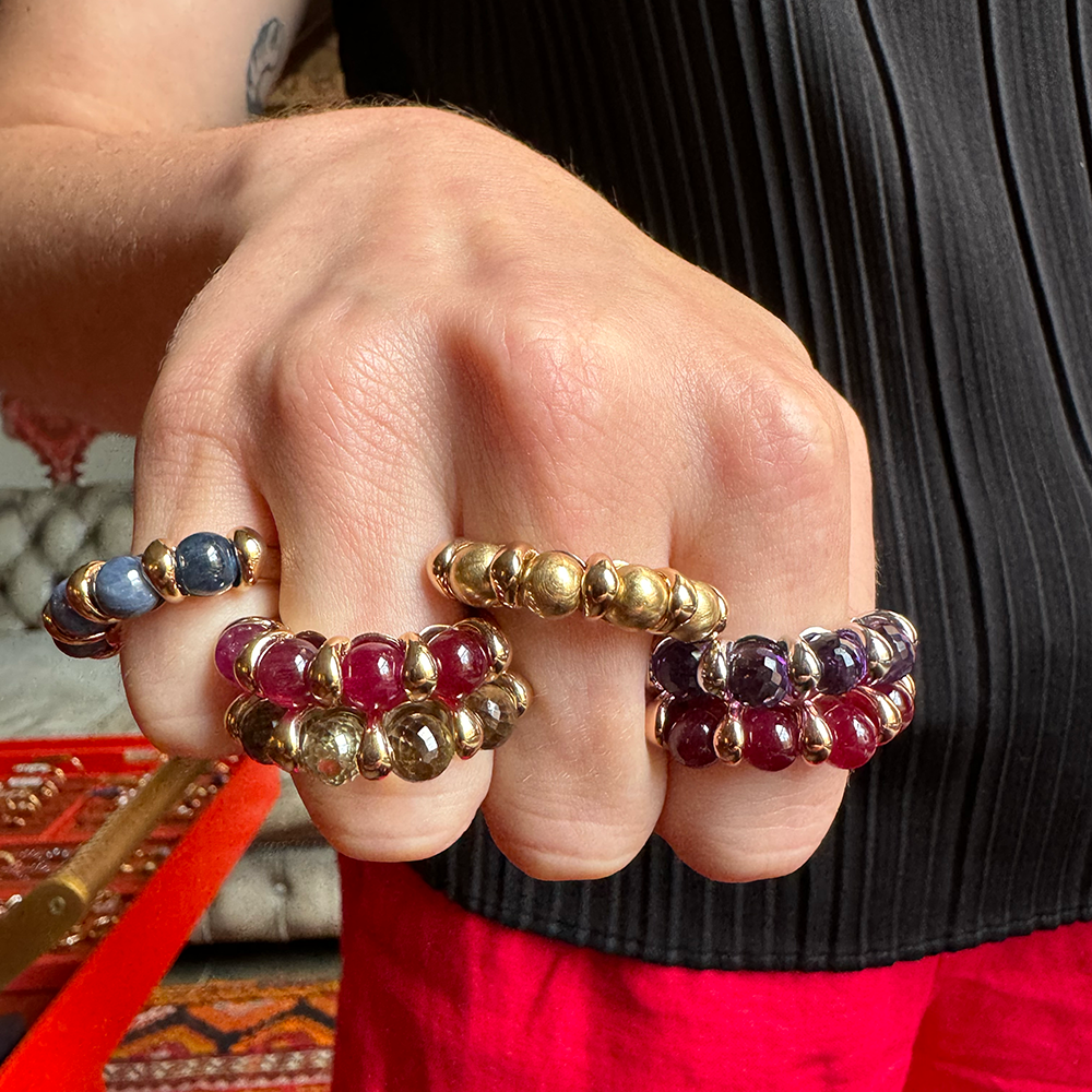 A ring full of independently rolling stones, hand-cut into spheres by master stone cutters that works as a Lock. It’s not that we don’t think a ring can simply be a ring. It can. We love a good ring. But when a ring can have balls that roll sitting on your finger and then, in a pinch be a Lock? We could not help ourselves. Adding a seamless hinge to this ring simply made sense. Do you need a ring full of balls that roll with a hinge to hang things from? What is this need you speak of?