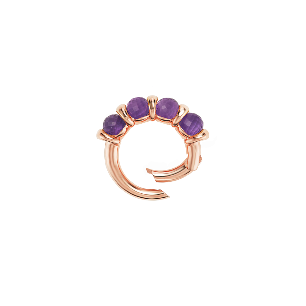 Chubby Rolling Spheres Lock Ring with Amethyst