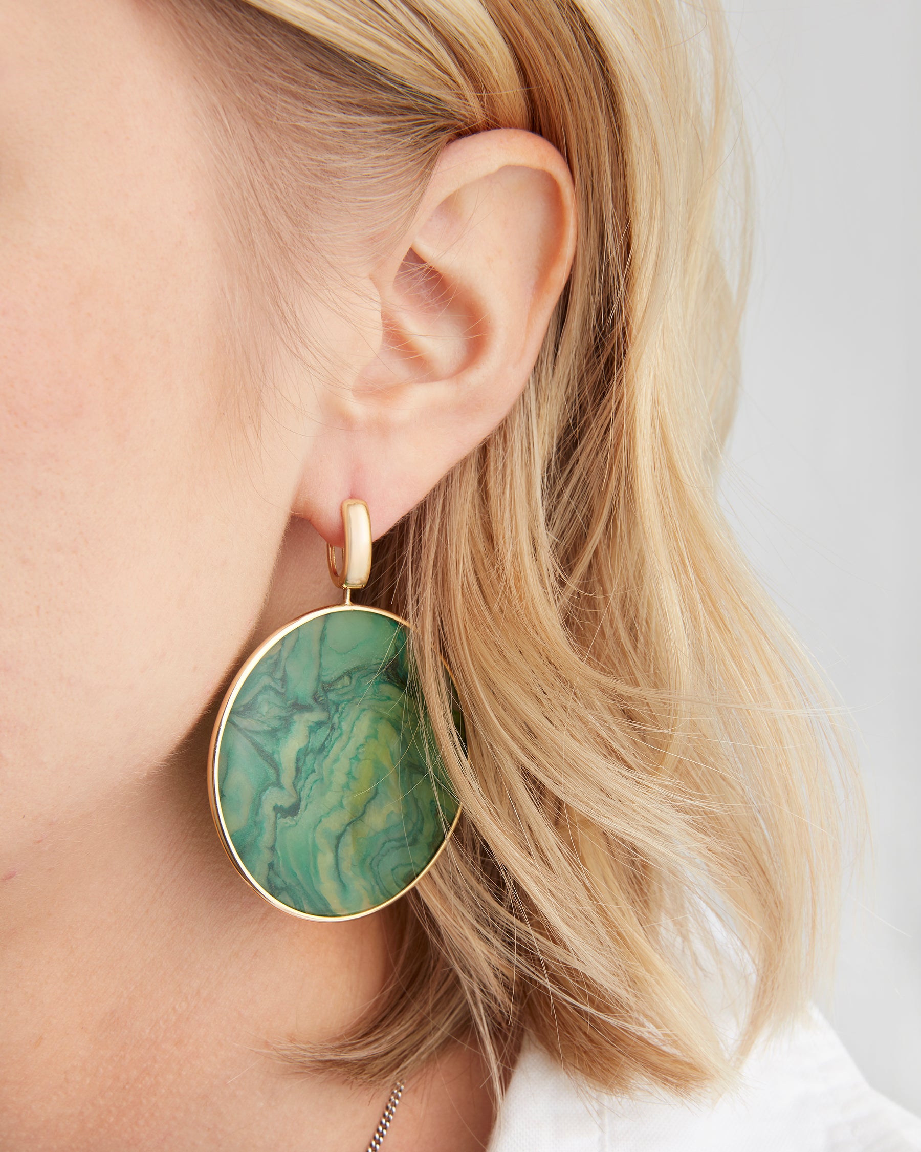 Elevate your style with our exquisite disc jewelry collection, where elegance meets versatility. The timeless allure of disc pendants and charms takes center stage, offering a sophisticated touch to any ensemble. Disc jewelry is a celebration of graceful simplicity. Our meticulously crafted disc earrings effortlessly frame your face, adding a touch of understated sophistication. The circular form is a symbol of unity and balance, making it a perfect addition to your everyday look or a special occasion ensemble. What sets our disc jewelry apart is the infusion of vibrant color. From jewel-toned gemstones to options like fordite and petrified wood in a spectrum of hues, each disc pendant or charm adds a pop of personality to your attire. Whether you opt for a single, standout piece or choose to layer for a dynamic effect, these discs are designed to be as unique as you. If you're looking for other shapes to consider, try earring collections like our lozenges and completed earrings.