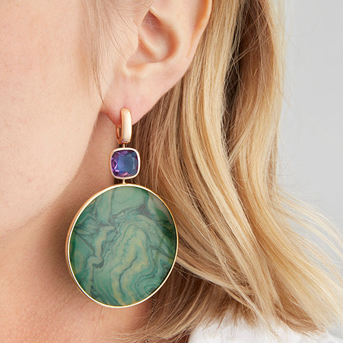 Brazilian Jade has gorgeous "landscape" quality to the stone and reflects the light. Green discs that can be added to Lozenges or worn on their own with the Earring Base.
