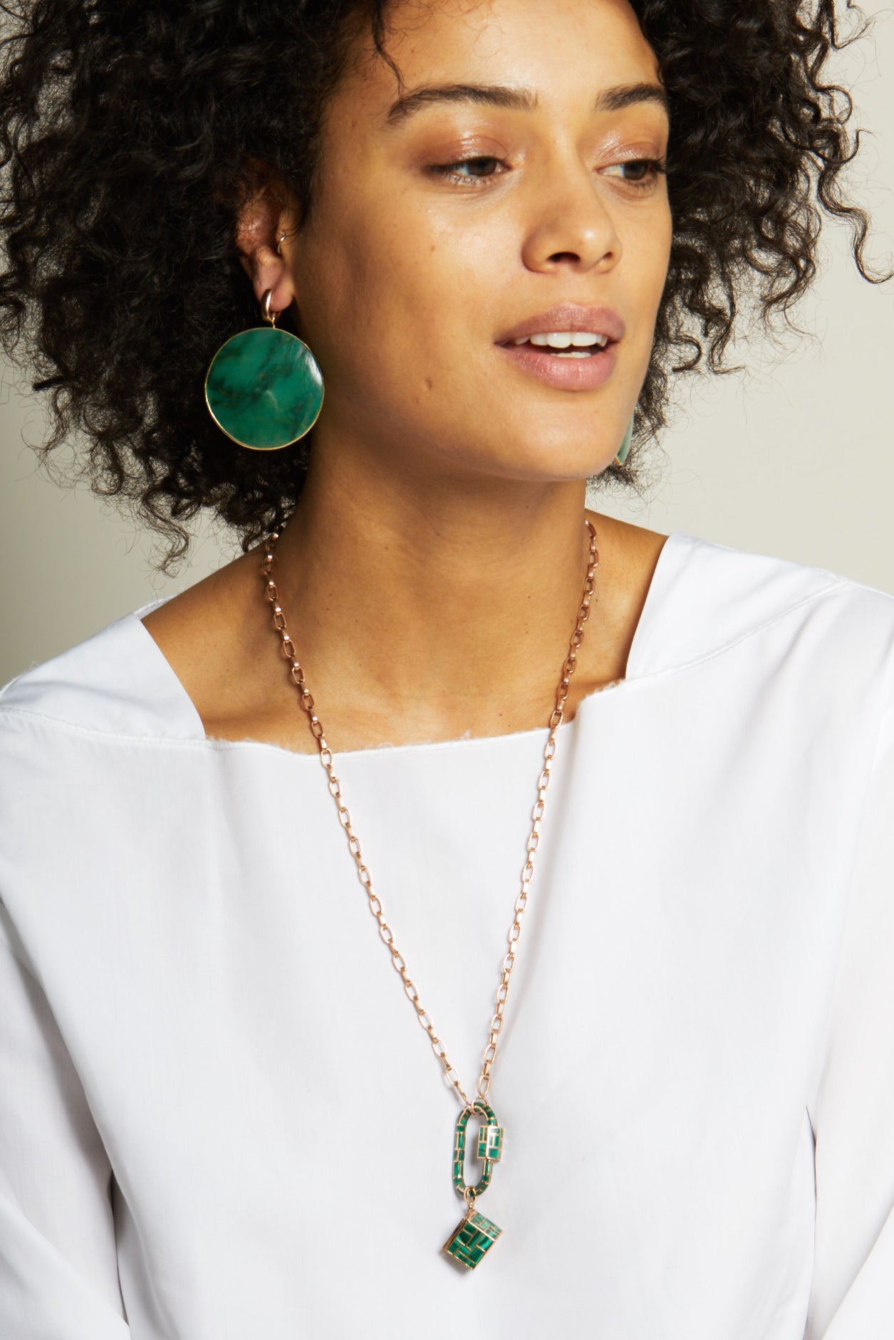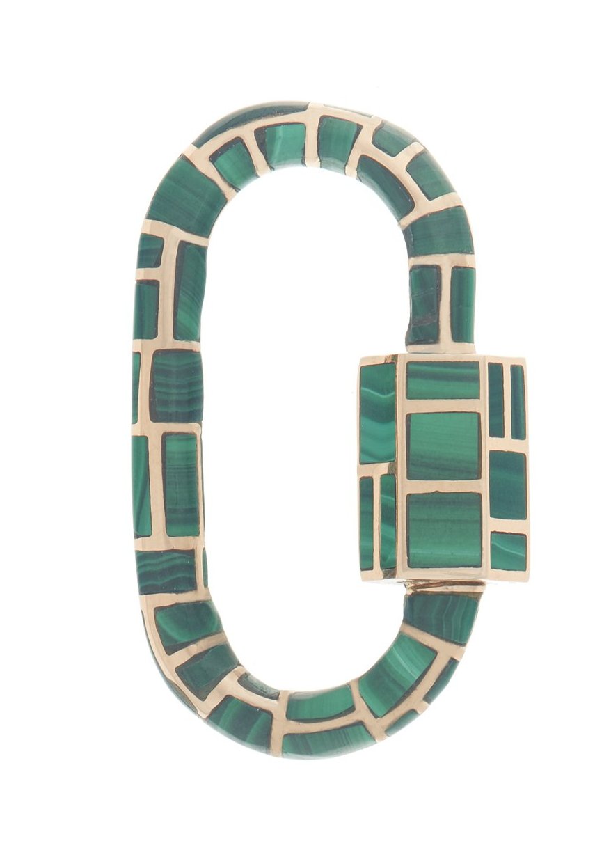The All Inlay Lock measures 3.6cm x 2cm with a thickness of 3.7mm. Closure is 8.5mm with 64 inlaid Malachite stones.