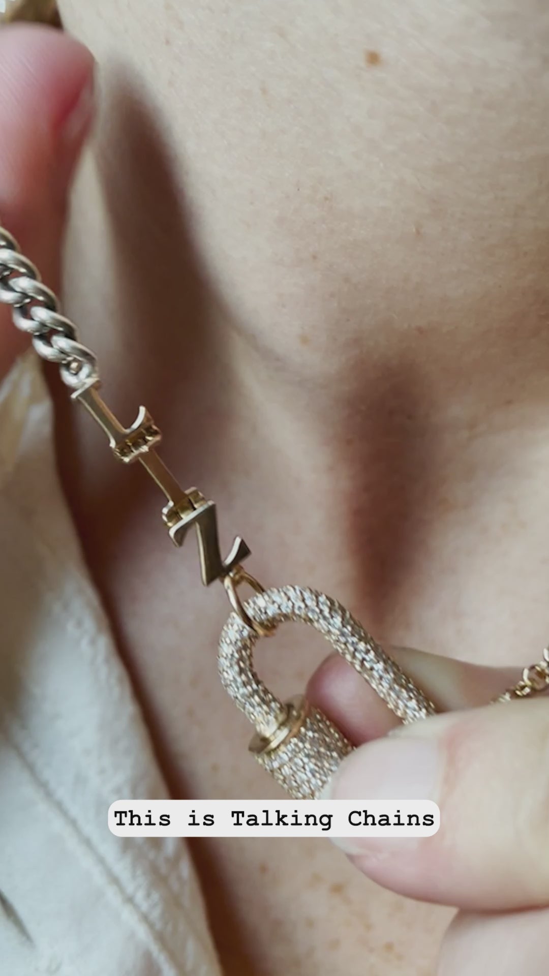While Talking Chains don't talk, you can say pretty much whatever you want with them, and they will sit on your neck on your wrist, and quietly but smashingly, say something. In gold or silver or combinations of both.