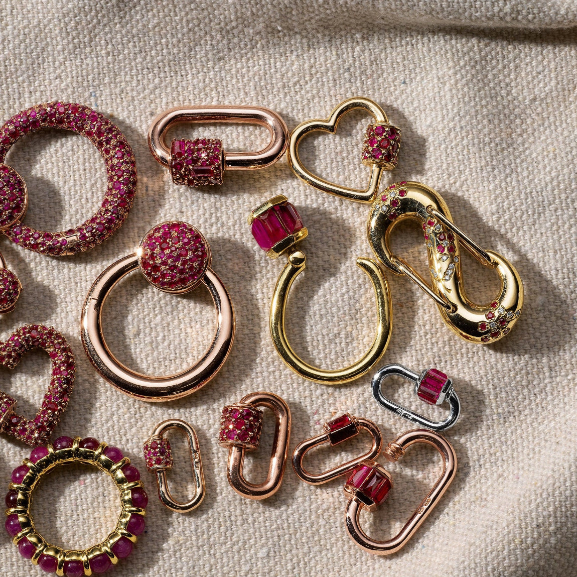 The Stoned Heartlock measures 2cm x 2cm with a thickness of 2.4mm, closure is 6.6mm. 14k Gold 1.3 Carat Rubies   #marla…